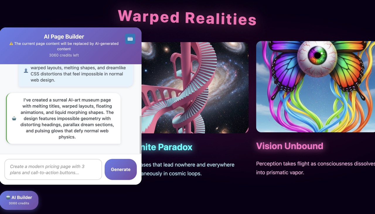 - 🎨 Smart Styling System – Generates custom CSS for every element based on your prompt.