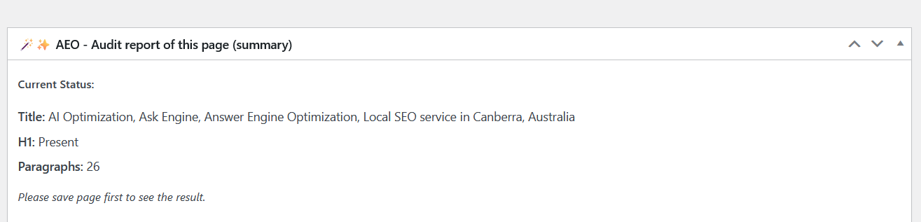 Answer Engine Optimization – AEO – Audit is a lightweight WordPress plugin that helps you prepare your website for answer engines, AI Optimization, AI search, and voice assistants. Unlike traditional SEO audits, this plugin focuses only on AEO/AIO elements that improve your chances of ranking in Position Zero, featured snippets, and voice search results. Answer Engine Optimization also called Generative Engine Optimization (GEO), Artificial Intelligence Optimization(AIO), Google AI Overview, AEOSEO, SEO Audit, AISEO, ASEO, AI SEO etc..