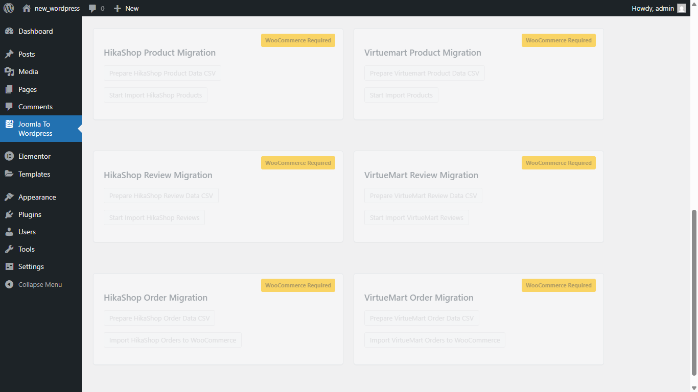 Navigate to ‘Joomla To WordPress’ in your WordPress admin menu
