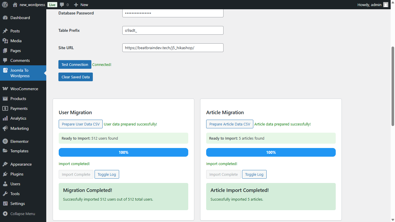 Article Migration – Convert Joomla articles to WordPress posts with full support for categories, tags, and Elementor plugin integration.