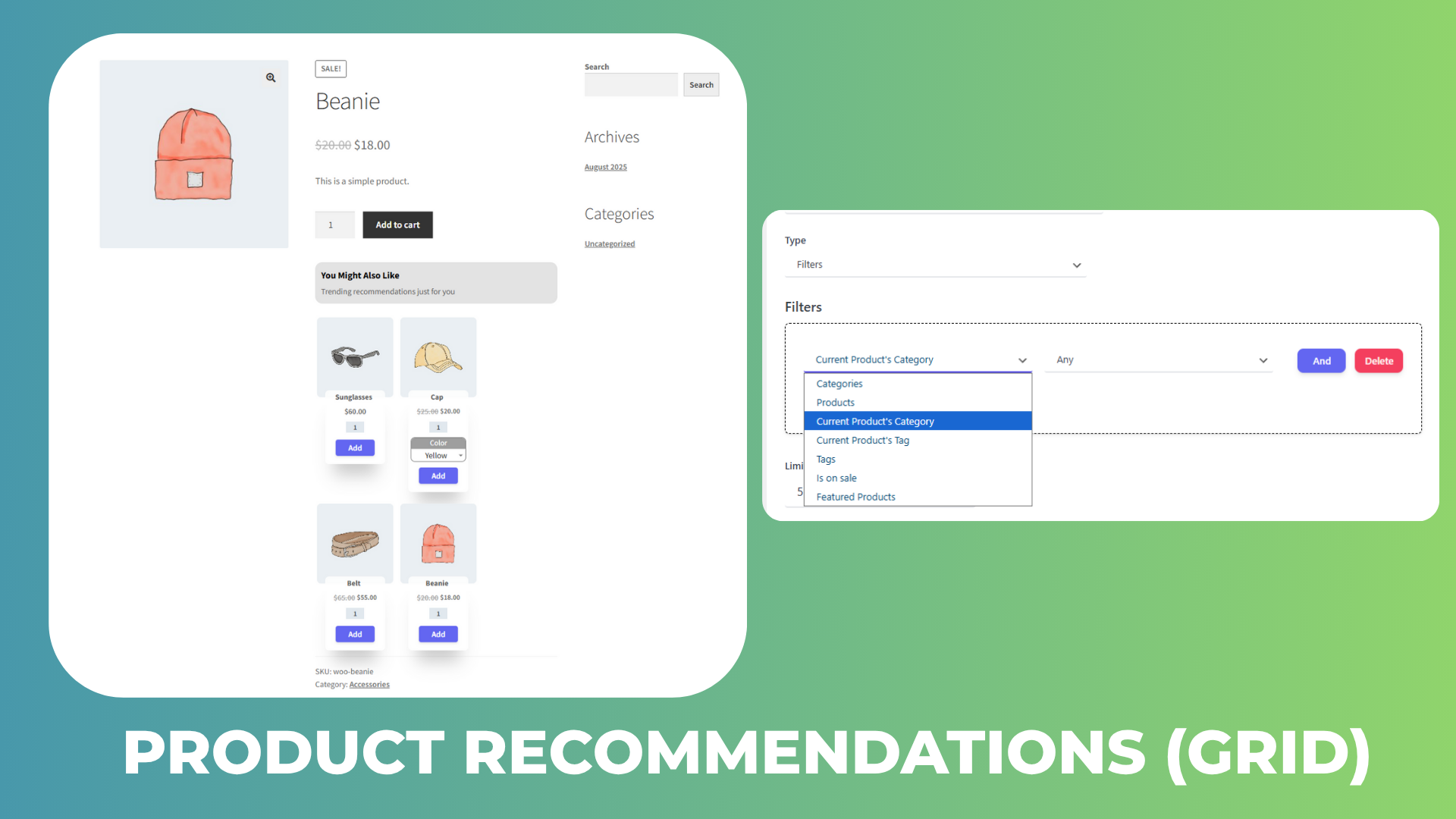 Create Product Recommendations Enhance your product pages by adding personalized product recommendations. You can display recommended items using either a grid or list layout, and tailor the recommendations to specific products, categories, or custom conditions. This helps improve product visibility, increase cross-selling opportunities, and provide a more engaging shopping experience for customers.