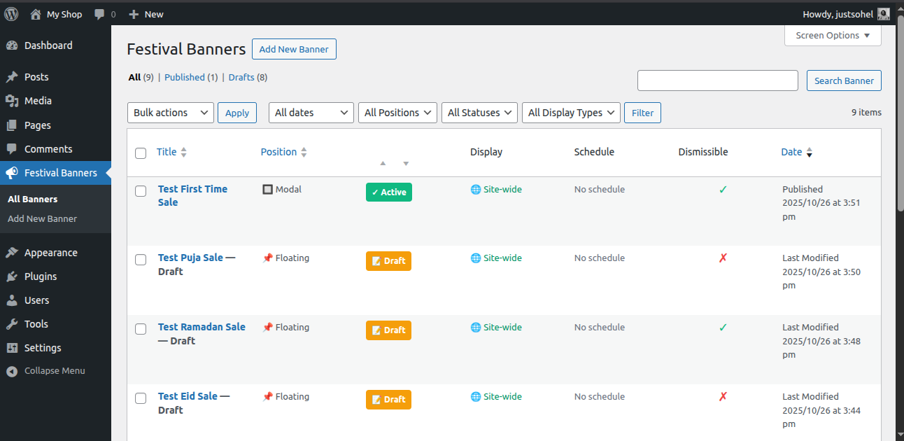 Add beautiful, customizable banners to your WordPress site during festivals and special occasions. Perfect for announcements, greetings, or promotiona …