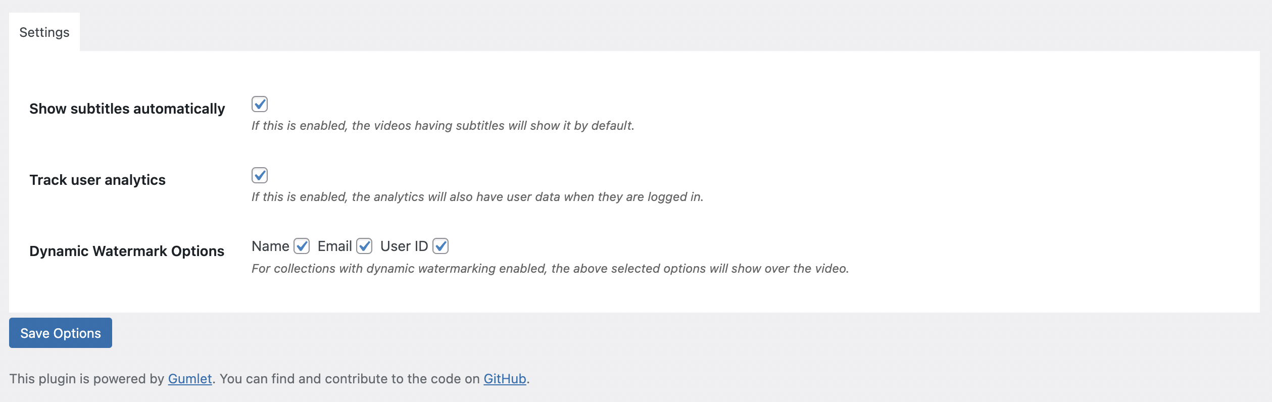 The plugin offers dynamic watermarking, player customisation, user level analytics, and embed shortcode for Gumlet videos