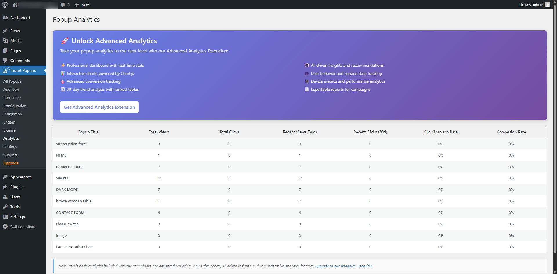 Yes! The core plugin includes built-in analytics to track popup performance, click-through rates, and conversion metrics, helping you optimize results.