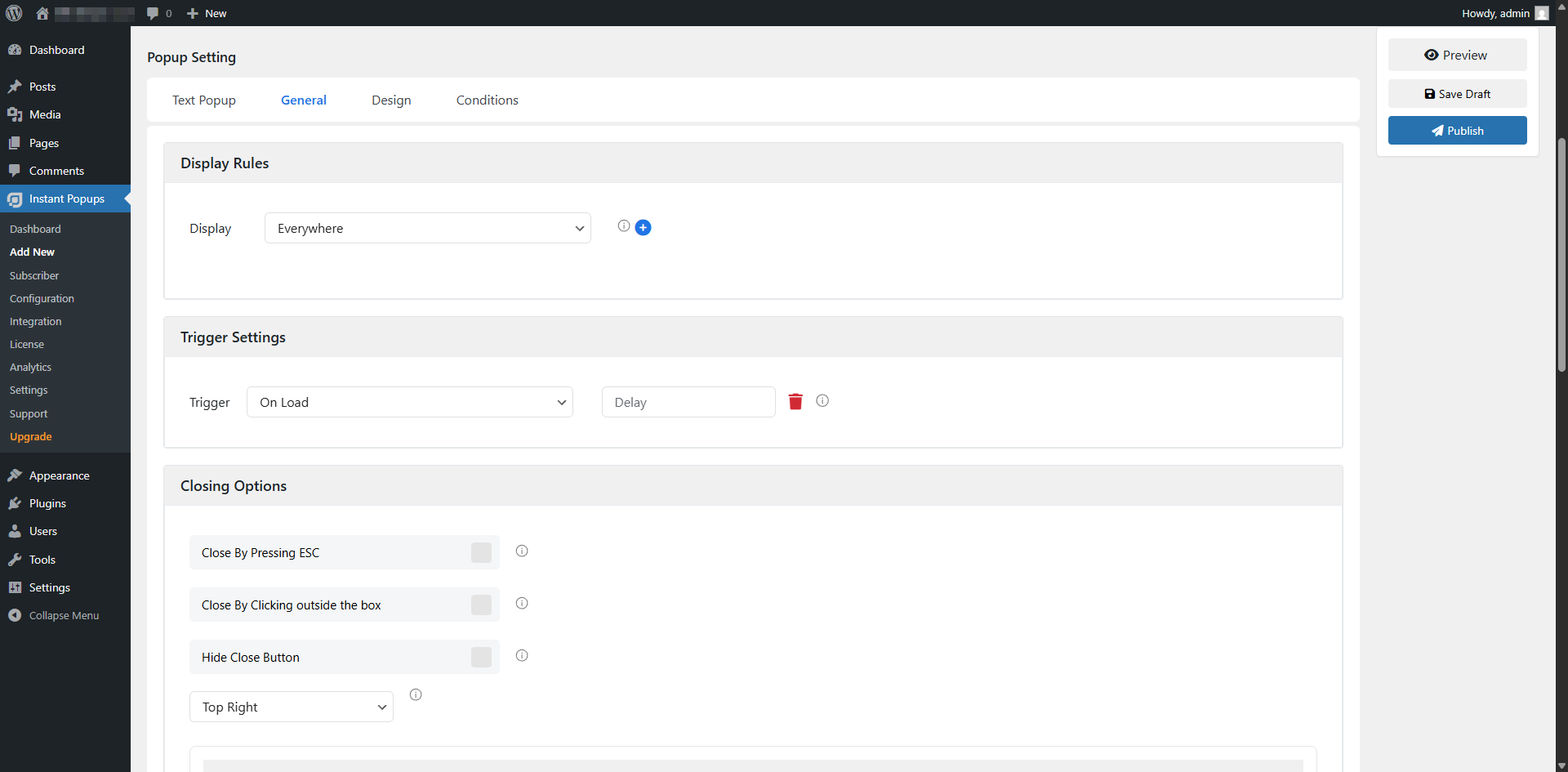 - Configure your popups using the plugin settings in the WordPress admin panel.