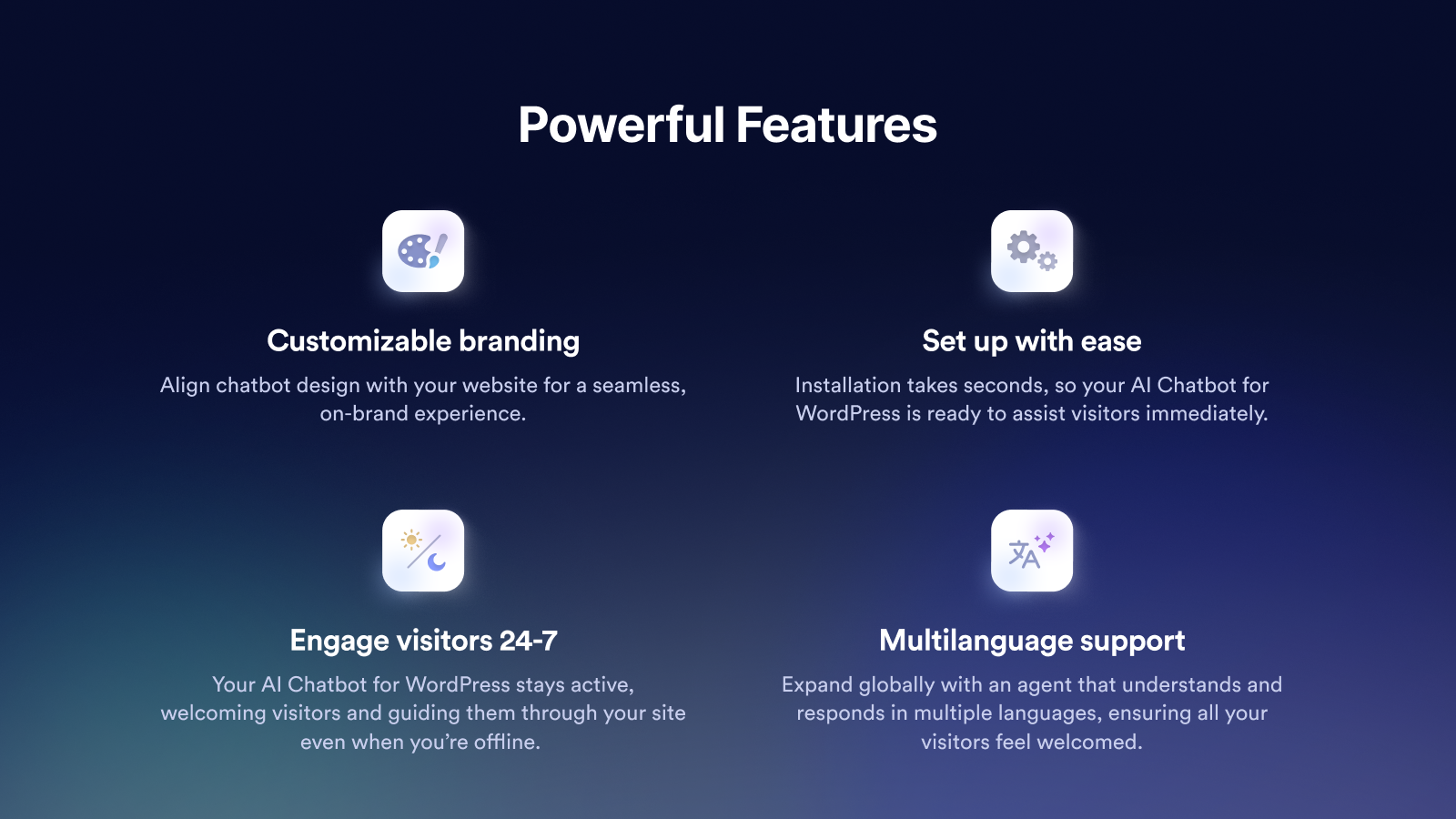 👩🏽💼 Small to mid-sized business owners using WordPress who want to capture leads, qualify visitors, or provide instant support.