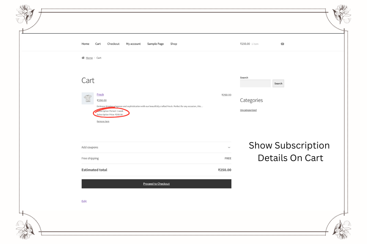 Checkout Subscription Display: How the subscription details look during checkout.