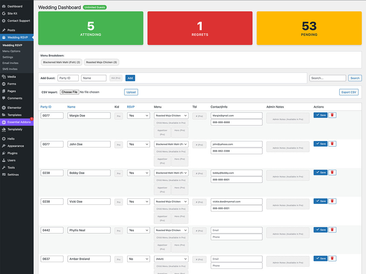 Wedding Party RSVP is a streamlined solution for managing wedding guest lists and RSVPs directly inside WordPress.